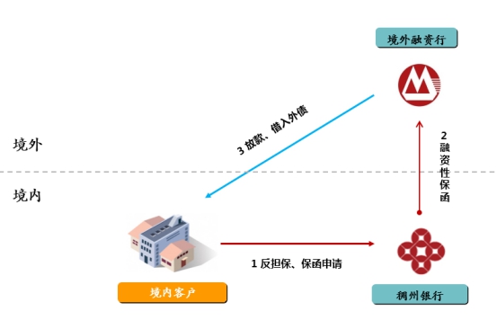 境內(nèi)企業(yè)向我行申請開立以境外銀行為受益人的跨境融資性保函或備用信用證,境外銀行憑我行保函或備用信用證為境內(nèi)企業(yè)發(fā)放貸款。