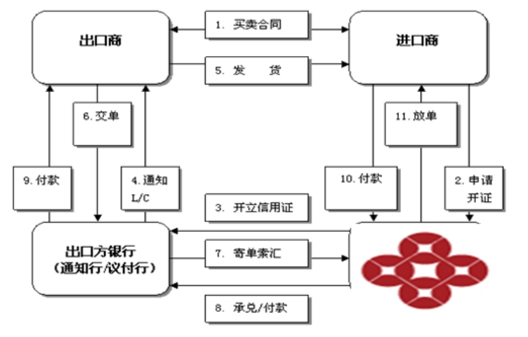 5.出口商備貨出運(yùn)并通過出口地銀行向我行提交信用證要求的單據(jù)。